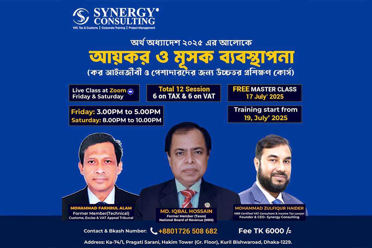 200 : INCOME TAX & VAT MANAGEMENT Total Class : 12 ( Vat - 6 ) ( Tax - 6 ) 01/02/2025 10:00 am Physical Class : 8,000 TK Online Class : 6000 TK View Details